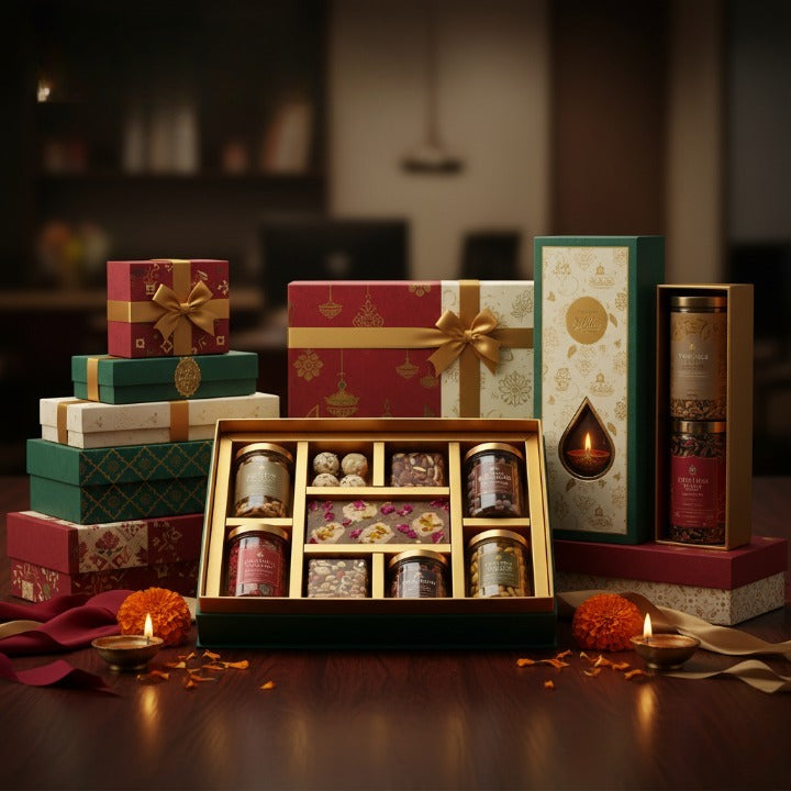 Customized Gift Hampers for Bulk Gifting - Corporate, Wedding and more | Gifts starting from Rs 500 | Options for mithai, baked treats, savoury snacks, personalised gift items and more